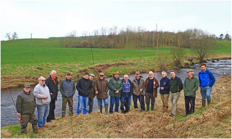 Anglers met on Wednesday 15th March at 9.30am on the village green at Kinbuck to toast the opening of the 2017 fishing season on the Allan Water. Roy Robertson, president of the Allan Water Angling Improvement Association talked about the challenges of having been downgraded by the Scottish Government to a Category 3 river in 2016 which meant anglers had to return all salmon caught. This had a significant effect on club membership as some of our members like to take one for the pot. Roy highlighted that the river has now been upgraded to a Category 2 river thanks to the efforts of the Allan anglers and the Forth District Salmon Fishery Board to conserve salmon and there are now opportunities to retain some salmon caught during 2017. He stated that it is the association’s policy that only one salmon may be taken on any given day with a season limit of two salmon per angler and asked that members show restraint and consider returning all salmon to help conserve stocks in the river. If any of the anglers who did not renew their permits in 2016 wished to return to the Association they would be made most welcome.