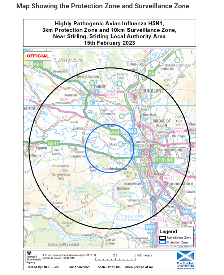 “Avian Influenza has been confirmed at a premises to the west of Stirling and restrictions are in place to limit the spread of the disease.