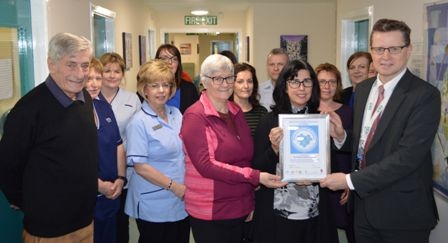 Dunblane Medical Practice has become the first health centre in Forth Valley to be awarded a dementia friendly certificate. The award was presented by NHS Medical Director Andrew Murray who is pictured with practice manager Sue Lawson, chair of Dementia Friendly Dunblane, Breda Seaman and Patient Participation Group member Richard Duckworth, together with practice staff.