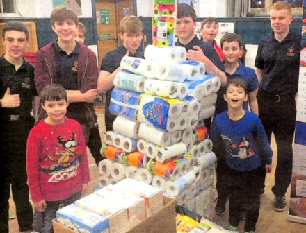 Organisers were delighted with the response and say the amount collected was impressive as people responded to the request to donate toilet paper and feminine hygiene products- neither of which weigh much. Dozens of the boys helped over the three-hour public donation period and many assisted to unload the food at Start Up’s new, larger depot in Stirling.