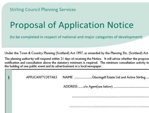 Glassingall Estates Ltd and Active Stirling have submitted to Stirling Council a Proposal of Application Notice for the development of 135 bespoke holiday lodges and a purpose-built residential activity centre on the Glassingall Estate near Dunblane.
