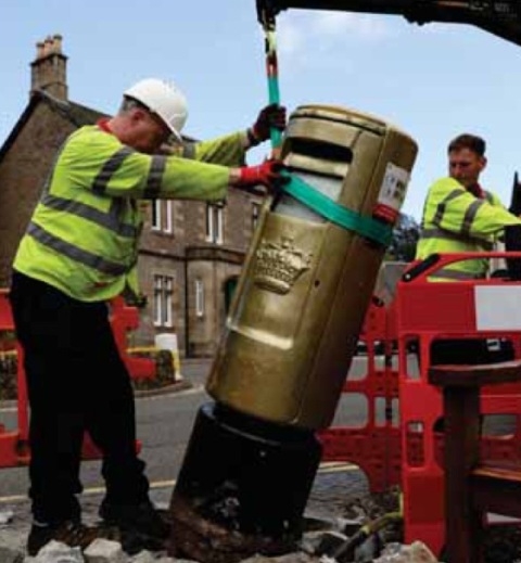 Monday 22 July : Dunblane’s Gold Post Box tonight took a tumble as a runaway car uprooted it.