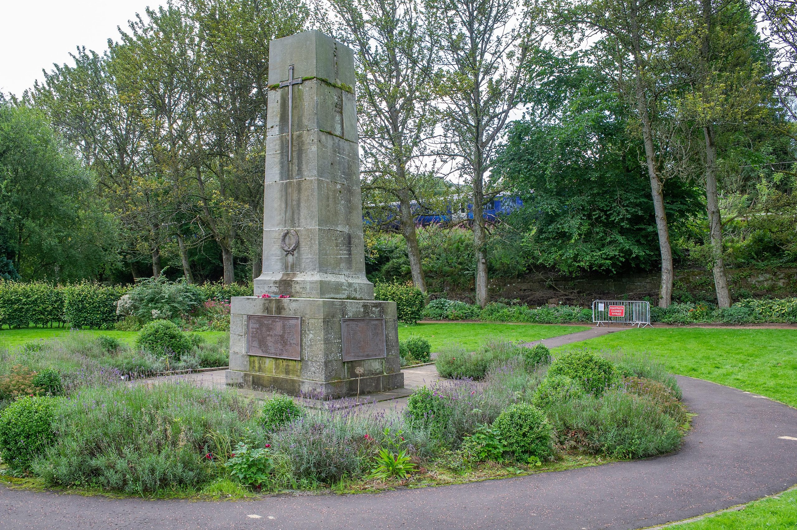 High risk trees lining the public path by the War Memorial are to be felled as they pose an imminent danger of falling branches.