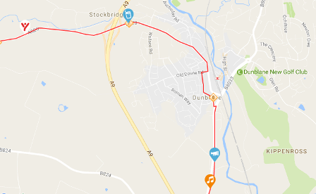 The race starts at 9.00am, so the first runners could be in Dunblane around 9.40. Road closures are likely to be between around 5.00am and midday – hopefully nearer the time there will be more information.